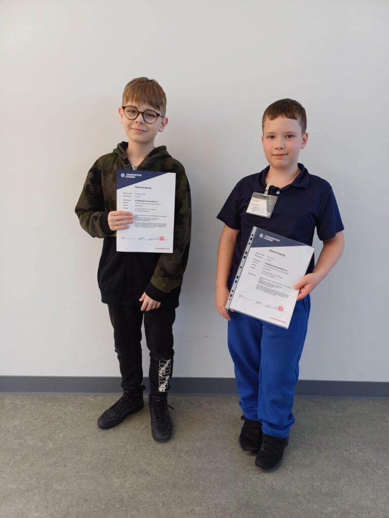 Unser Team vom Schulsanitätsdienst ist immer dann zur Stelle, wenn schnelle Hilfe gebraucht wird. Wir kümmern uns um leichte Verletzungen, unterstützen bei Notfällen und überbrücken bei schwereren Verletzungen die Zeit, bis der Rettungsdienst eintrifft. Unsere Schulsanitäter arbeiten verantwortungsbewusst und zuverlässig im Team – ob auf dem Pausenhof oder bei Schulveranstaltungen, wie unserem Eislauf-Tag, dem Sportabzeichentag oder dem Fahrradturnier.